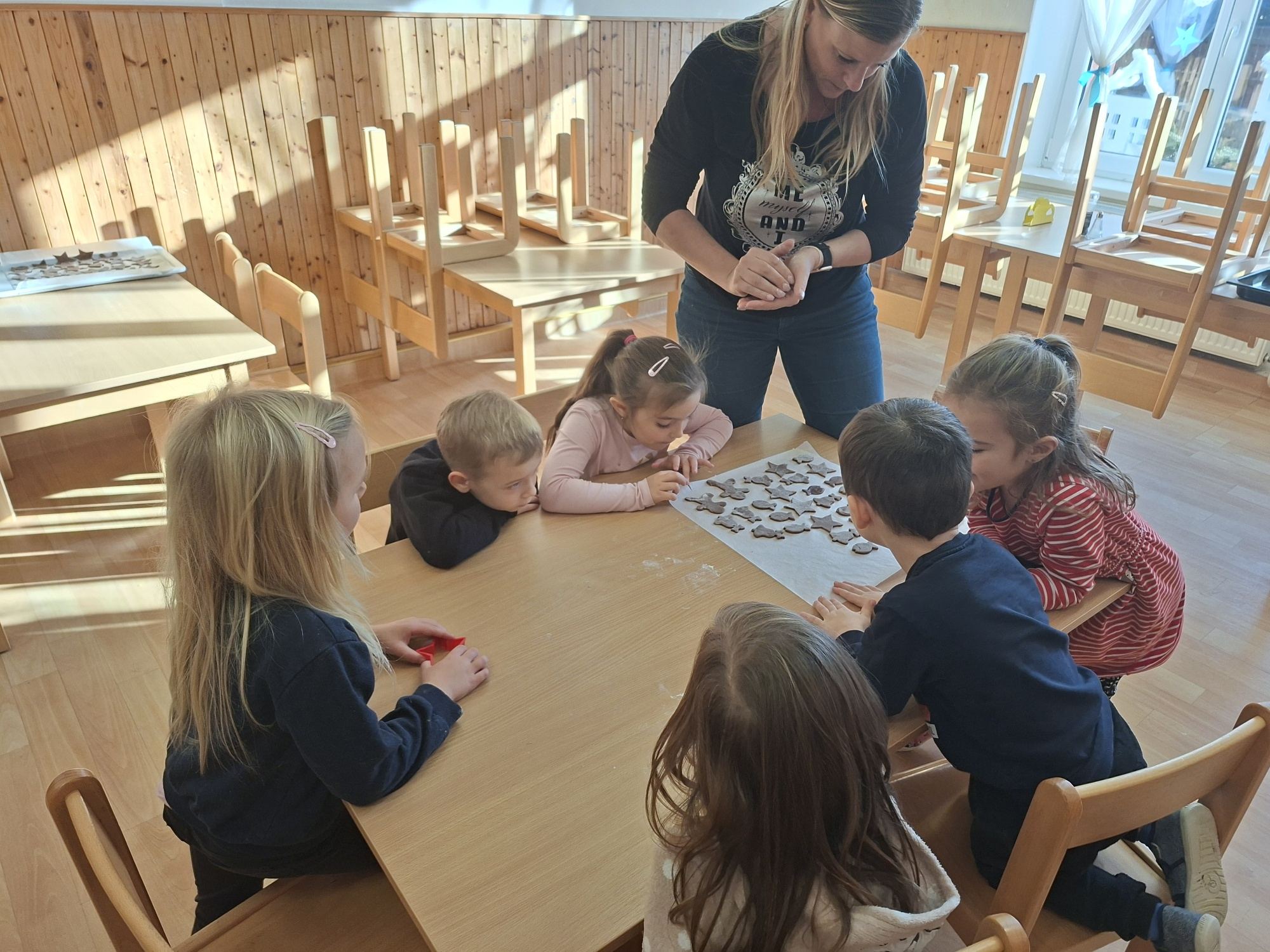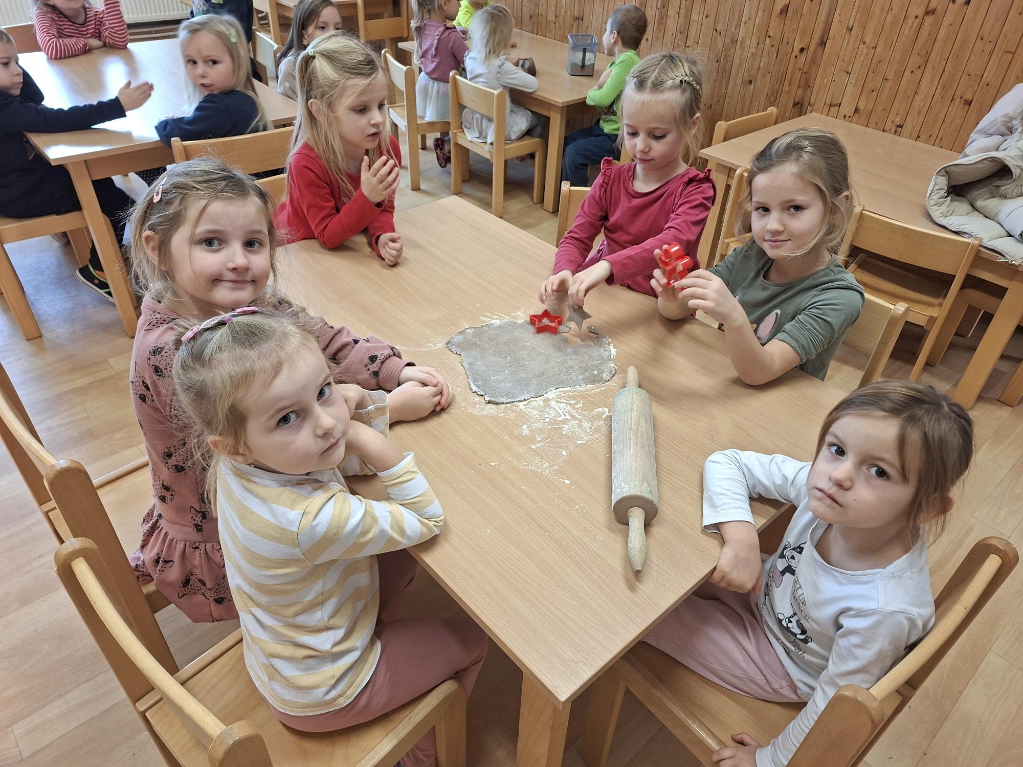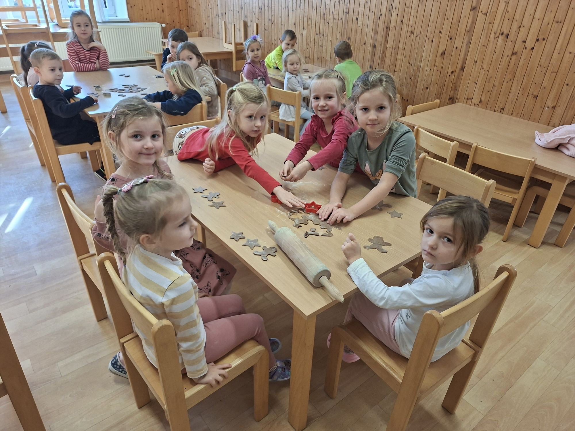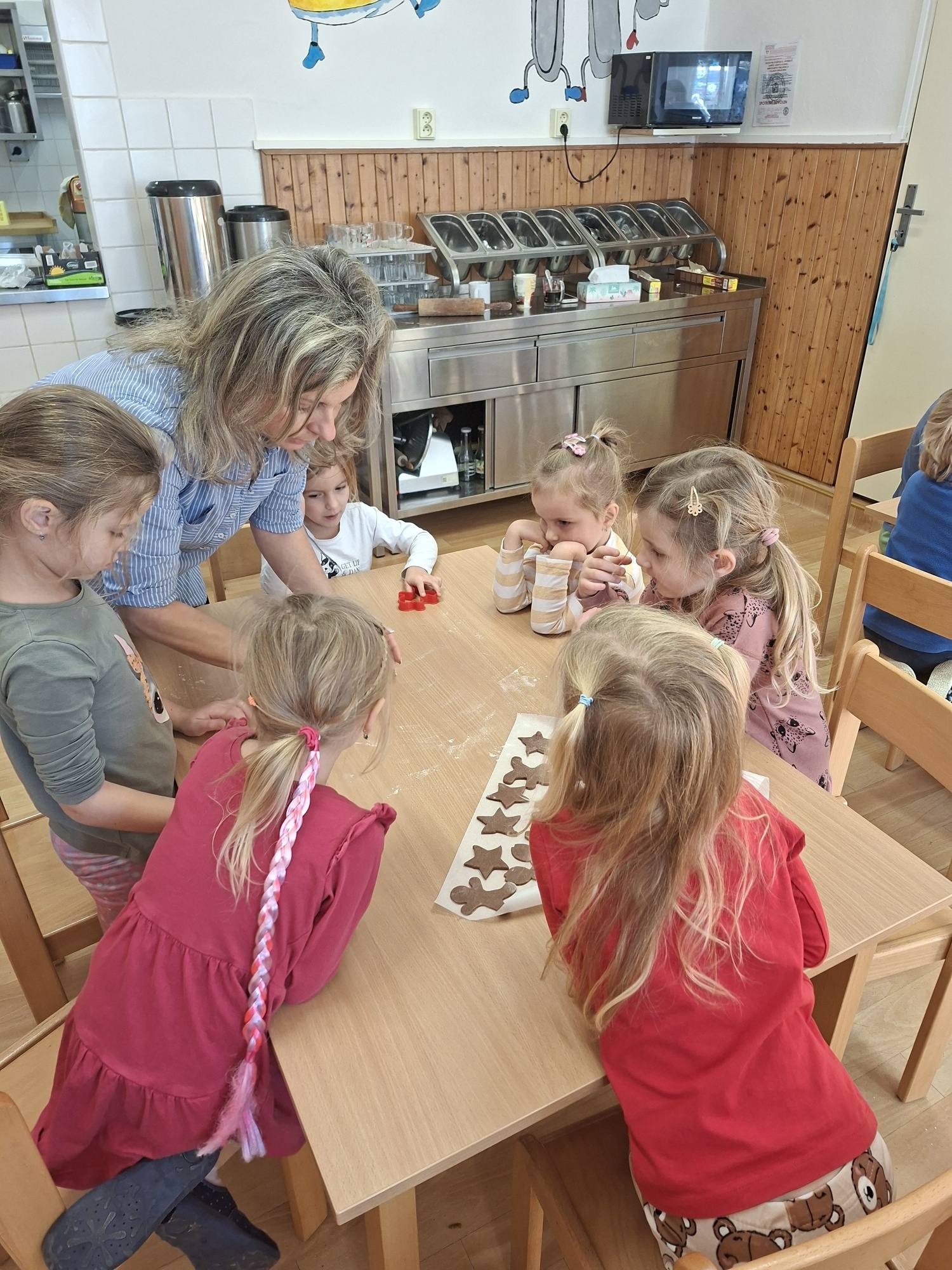 K Vánocům patří pečení perníčků. Vyzkoušeli jsme si to i ve školce. Válení těsta a vykrajování formičkami nám šlo výborně. Pak už jen upéct a ochutnávat... Byly výborné!