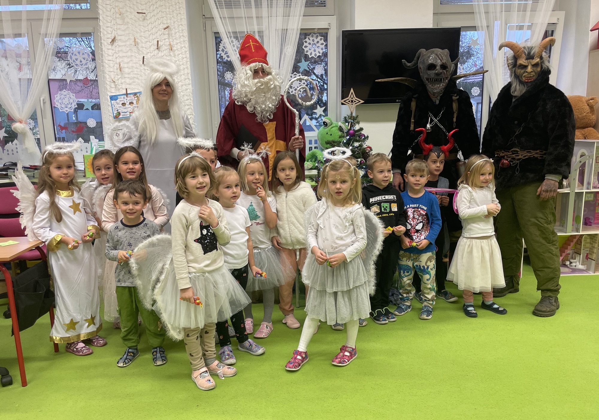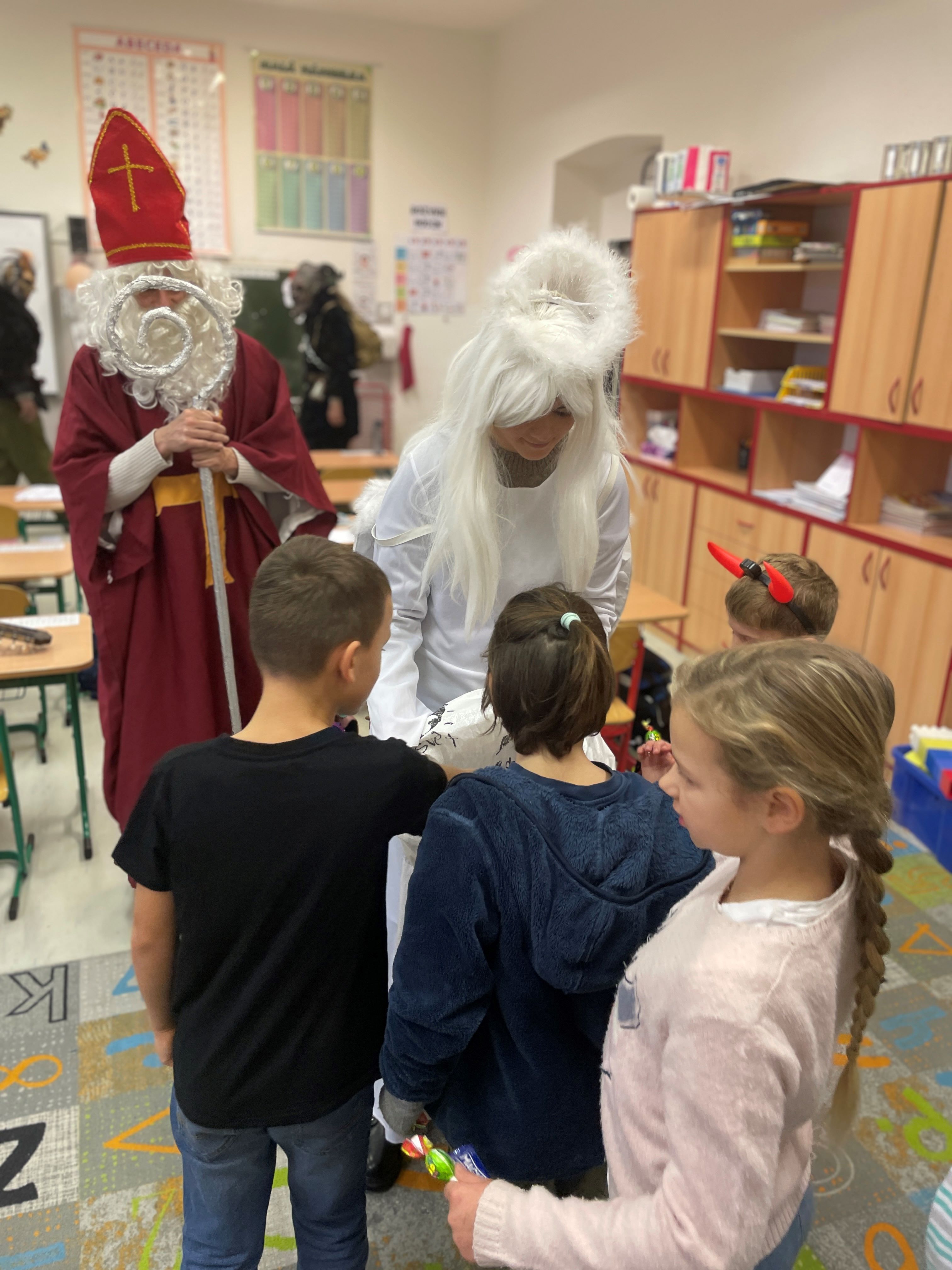 Nastal den, na který se některé děti těšily, některé se ho obávaly. Po roce nás opět přišel do školky navštívit čert, Mikuláš a anděl. Naštěstí vše dobře dopadlo. Čert do pekla odešel s prázdnou a všechny děti si po zazpívání písniček a odříkání básniček odnesly domů balíčky s dobrotami. Tak zase příští rok nashledanou.