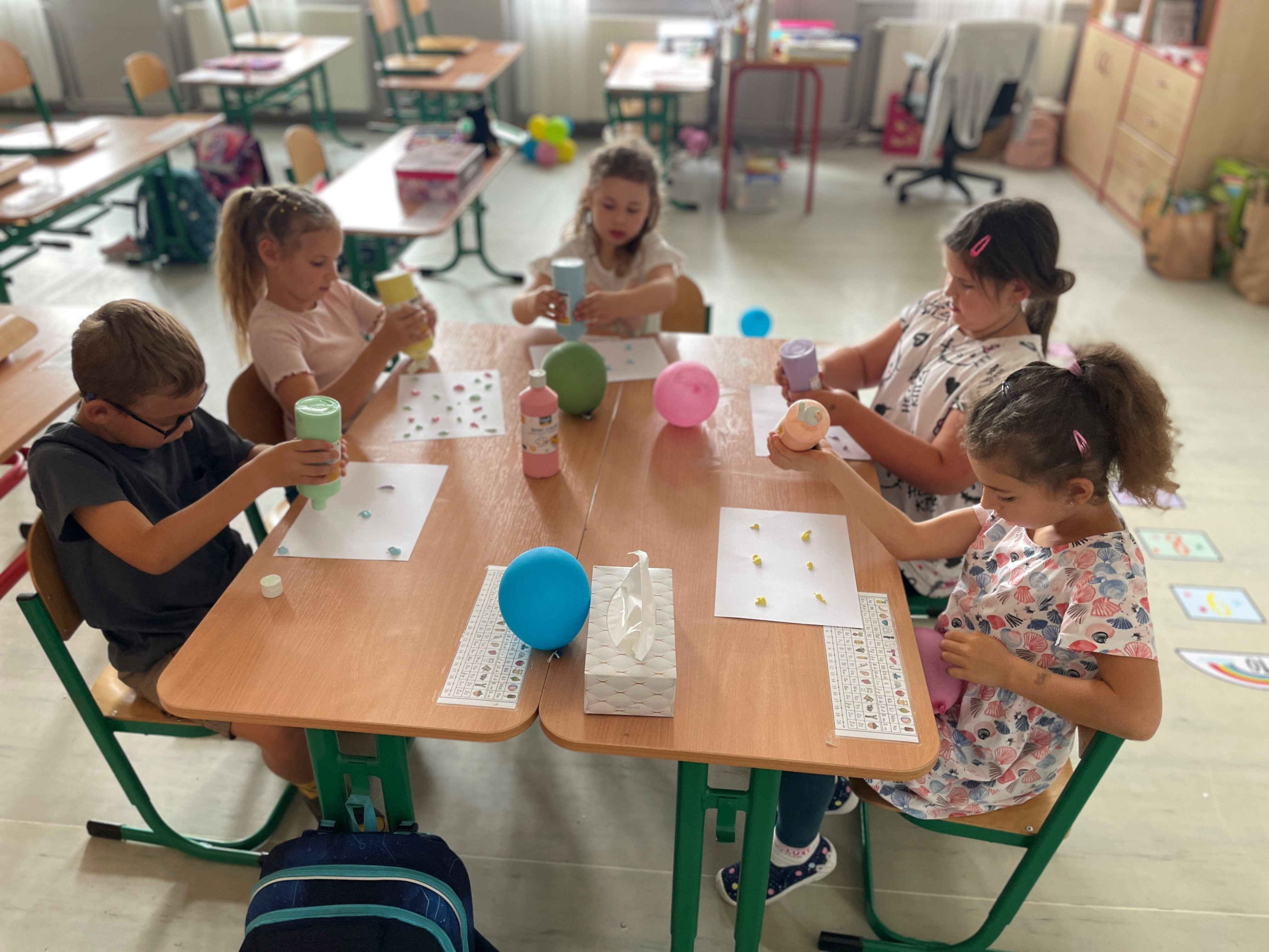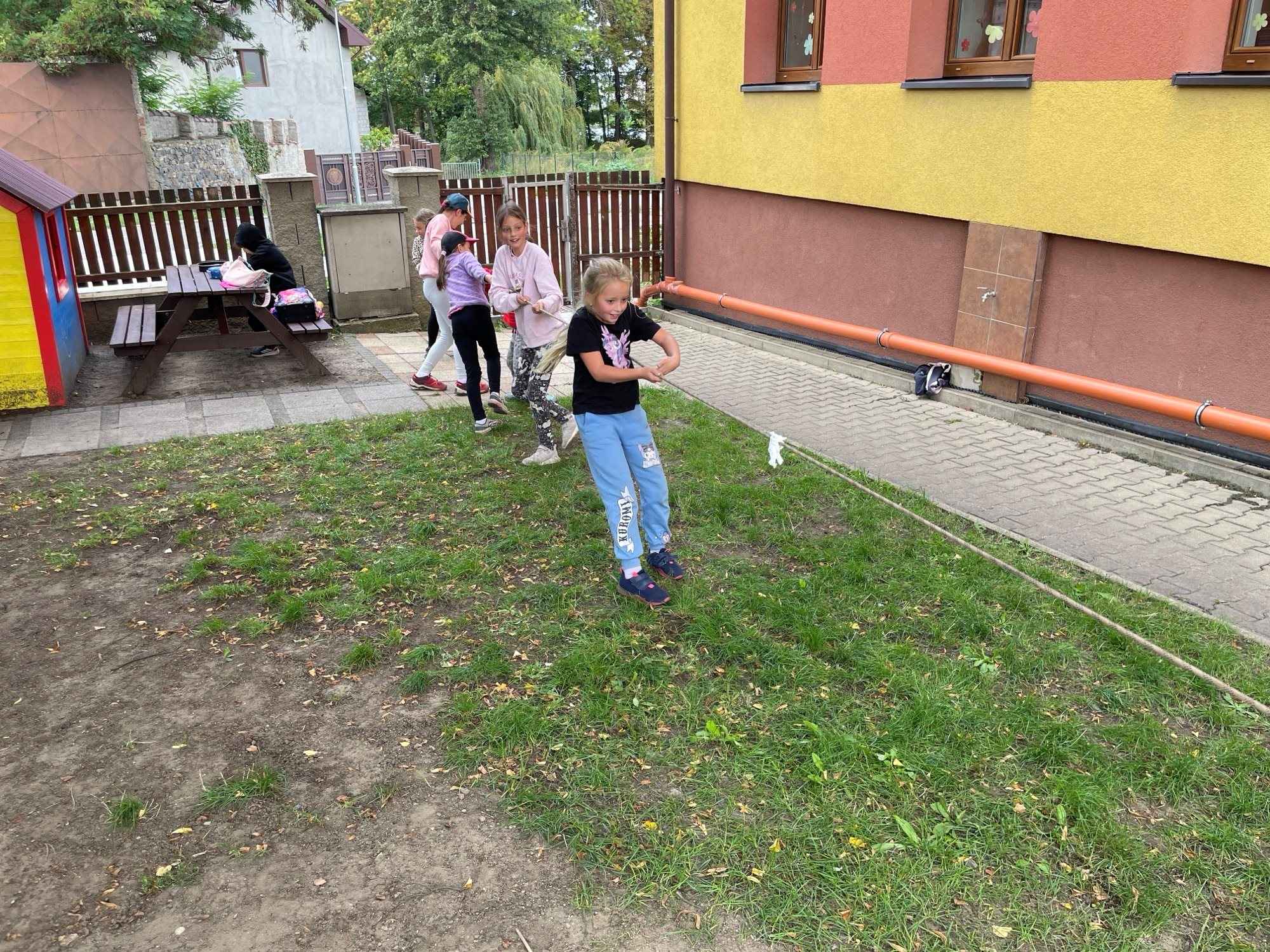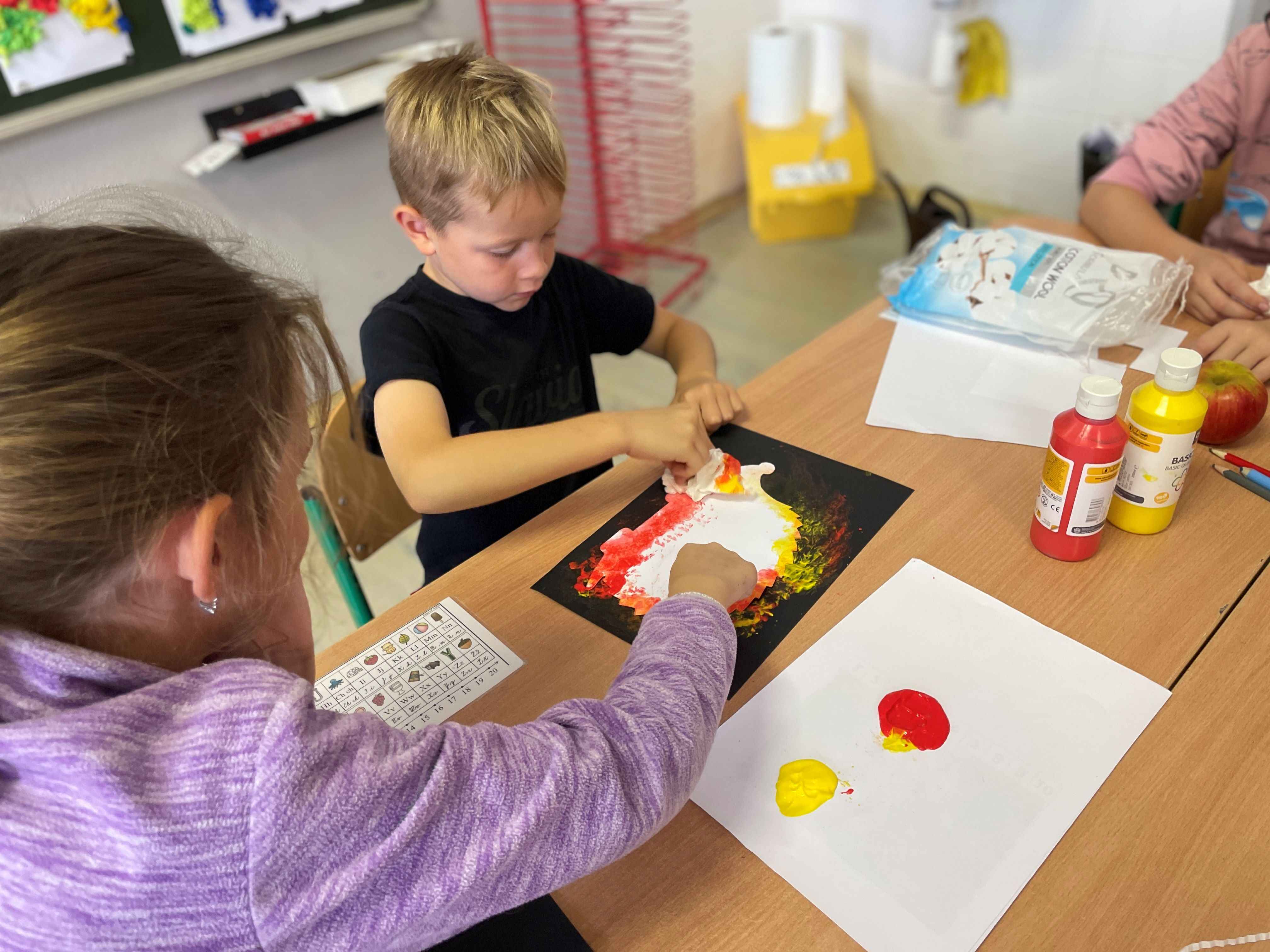 V září jsme si užívali hezké počasí hlavně venku. Hráli jsme různé hry s lanem i míčem, běhali po hřišti a sbírali přírodniny, ze kterých jsme pak tvořili podzimní výzdobu do oken i na naši nástěnku. Když jsme zrovna nebyli venku, scházeli jsme se v jurtě, kde jsme si zahráli deskovky a užili spoustu legrace