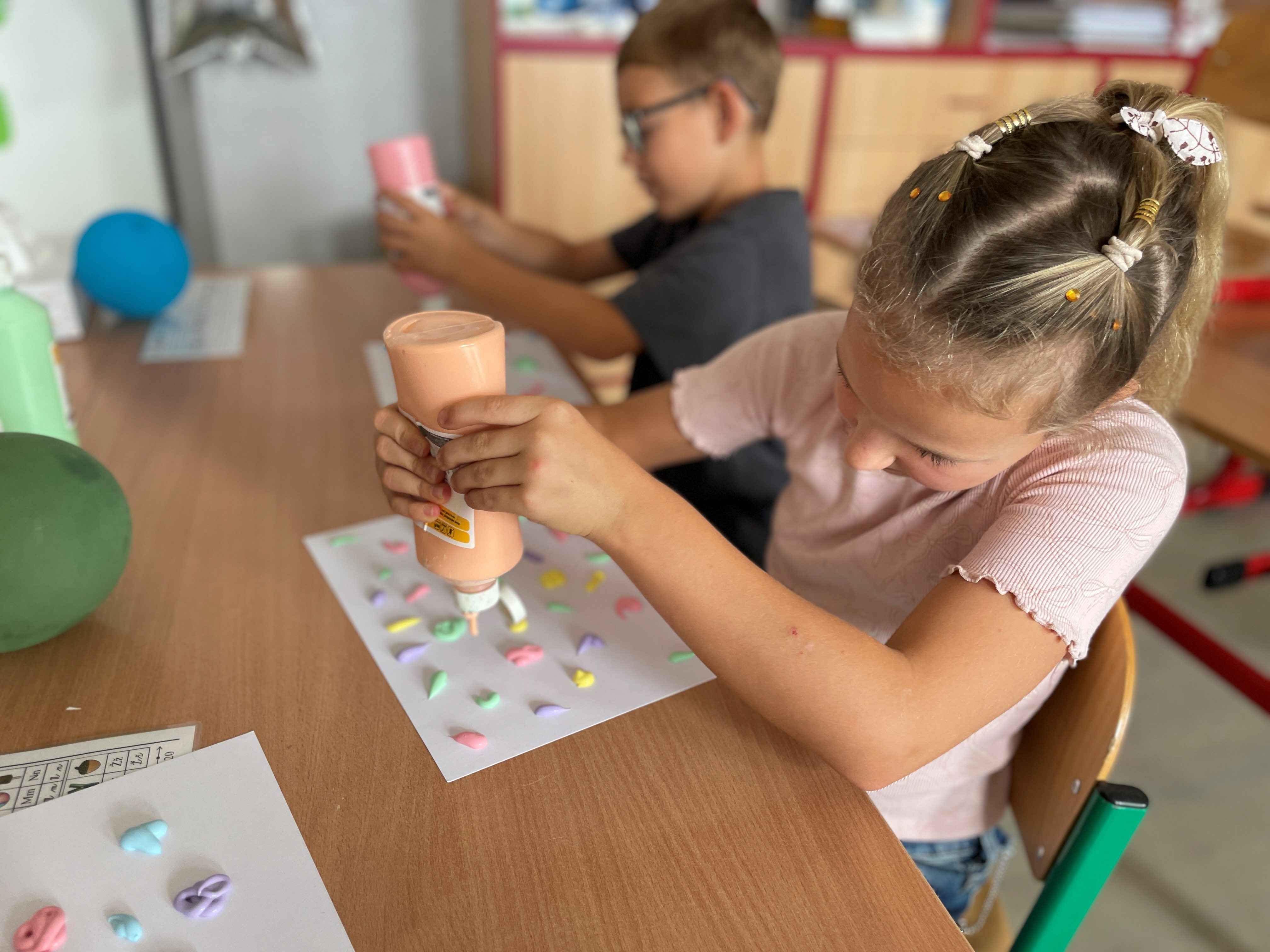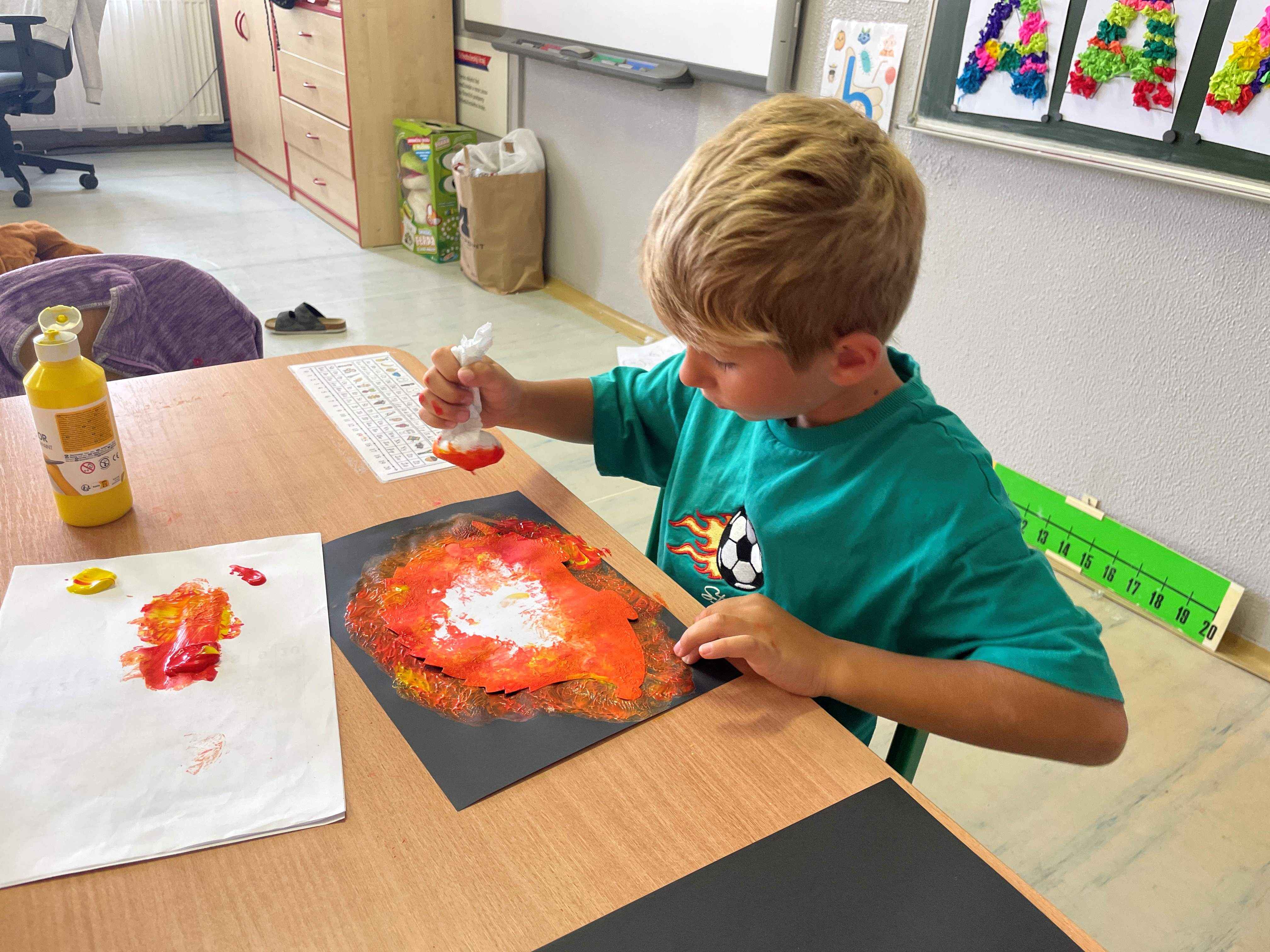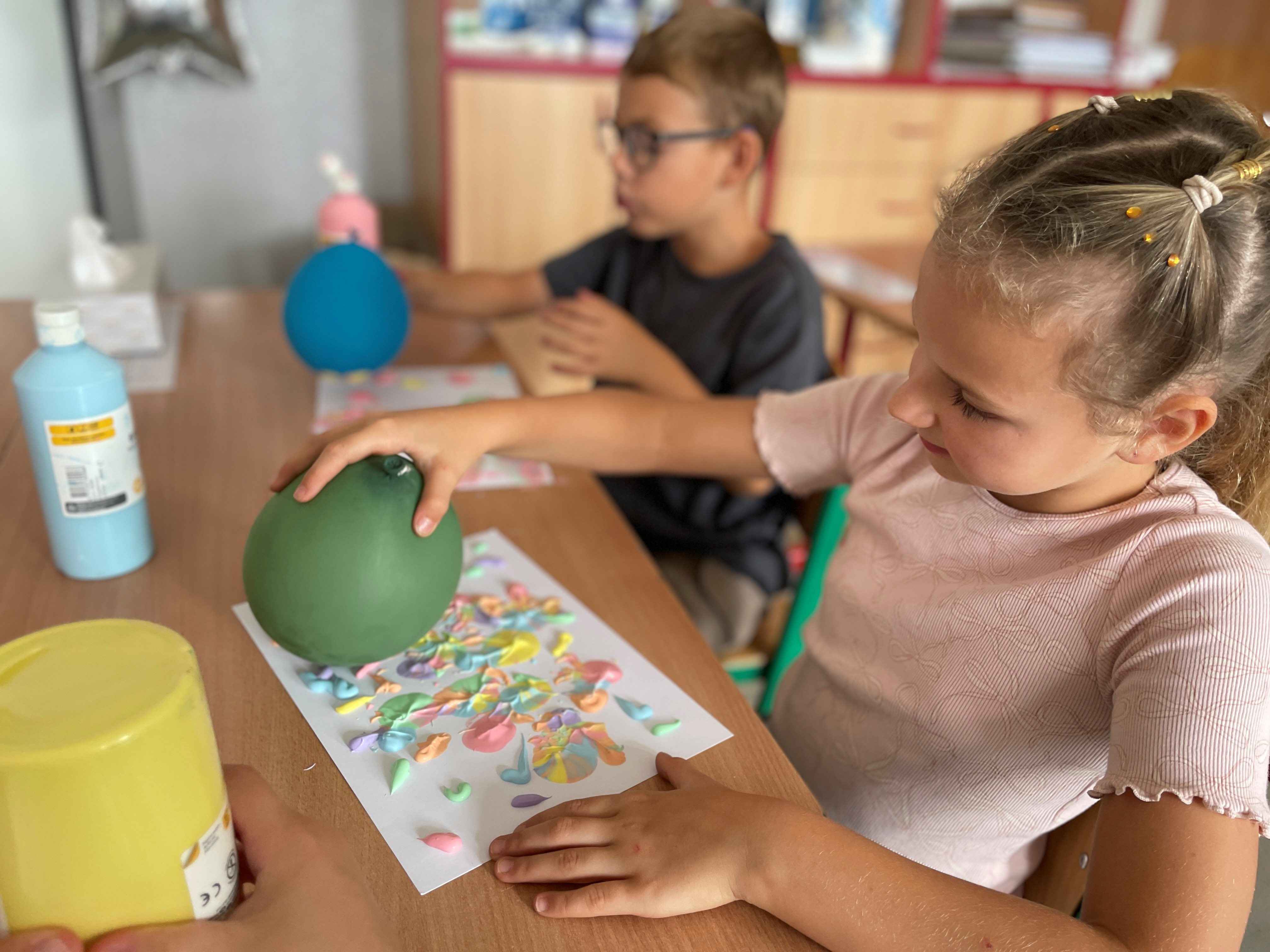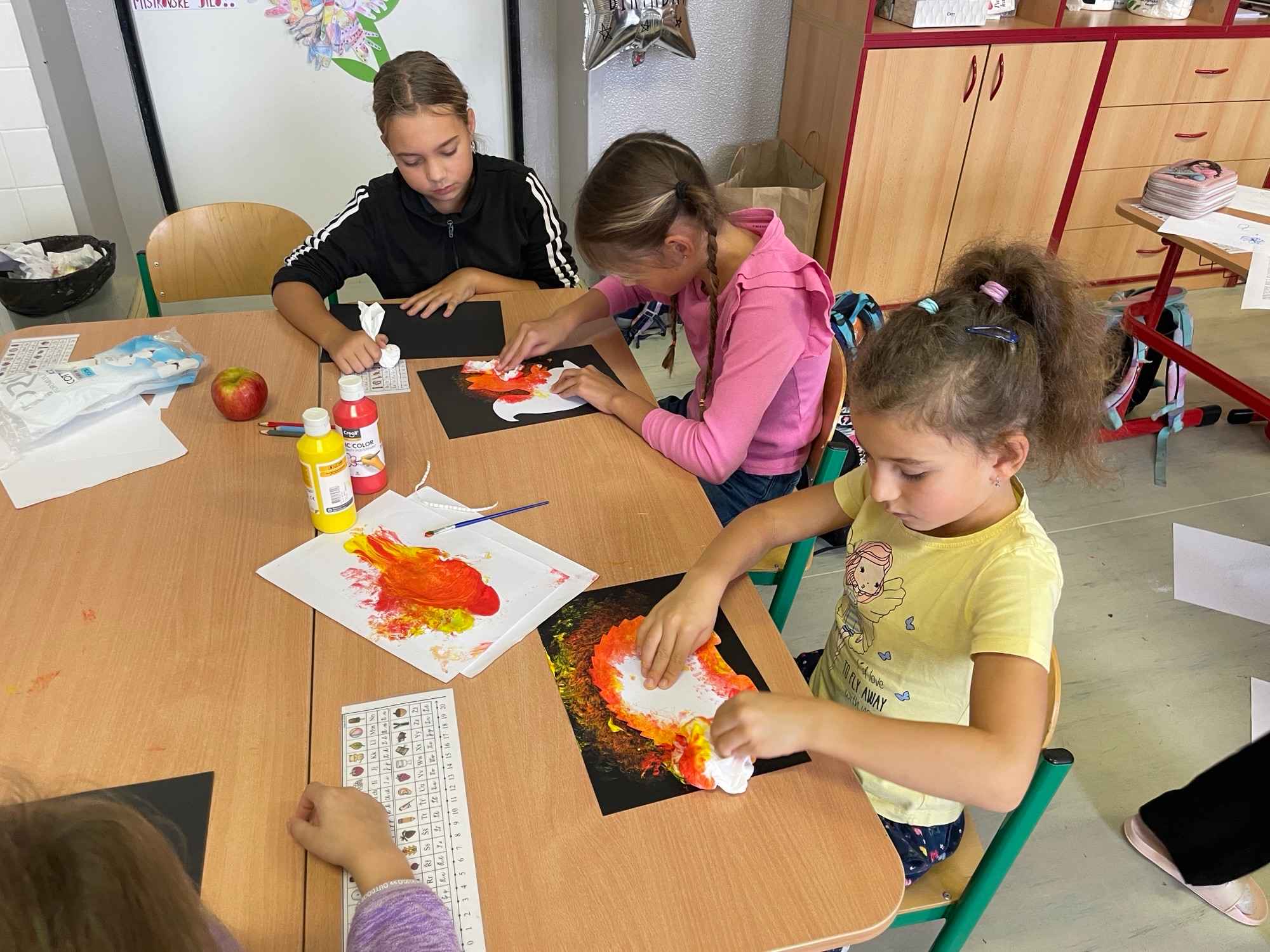 V září jsme si užívali hezké počasí hlavně venku. Hráli jsme různé hry s lanem i míčem, běhali po hřišti a sbírali přírodniny, ze kterých jsme pak tvořili podzimní výzdobu do oken i na naši nástěnku. Když jsme zrovna nebyli venku, scházeli jsme se v jurtě, kde jsme si zahráli deskovky a užili spoustu legrace